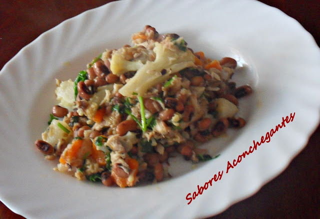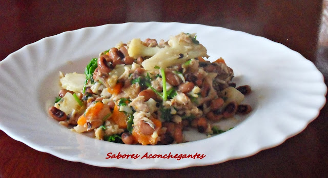 Dado que era peixe assado, achei que o combinaria melhor seriam legumes, por isso toca a ver o que havia no frigorífico e dispensa. E saiu esta roupa velha que foi hoje o nosso almoço :)